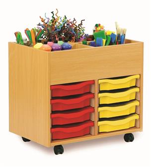 Fully assembled wooden tray kinderbox units to take a variety of Monarch Single and Monarch Double plastic trays. These mobile units are suited to primary schools, classrooms, and other educational environments. The units are available in a beech or maple carcass and the full range of Monarch plastic tray colours. Or order a combination of red, blue, green and yellow trays (see below).