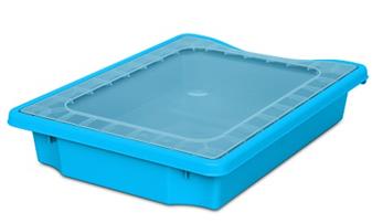 Four sizes (see below) of New Monarch plastic trays, available in a variety of colours. Clip-on polypropylene lids also available and one lid size fits all 4 size trays. The material used to make the trays has been chosen for quality and safety. For safety Polypropylene is chemically resistant to the majority of chemicals used in schools and semi-fire retardant at 0.22mm per min. There is also an anti-static additive in the Polypropylene to reduce the attraction of dust. Minimum order 6 t