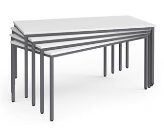Multi-Purpose Tables - Graphite Frame, for canteen or breakout areas, suitable as a meeting table, or for a wide variety of uses in a number of different environments. It features a graphite frame, and legs with adjustable feet, and a rectangular 25mm thickness table top in a choice of 4 finishes: Beech, Oak, Grey Oak and White. The rectangular tables can be spiral stacked. The tables require simple assembly and comes with a 1 year guarantee.
