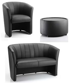 Neo Tub & Sofa Seating upholstered in a soft touch black leather. Traditional full soft bonded leather gives you a practical and cost effective solution to your reception, waiting area or breakout areas. The Neo comes in a single tub, a twin tub and a table with the option to add a glass top. Ideal seating for reception areas in the school, clinic or in surgery waiting room areas. Quick delivery 3-5 working days.