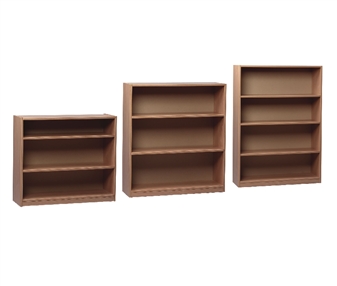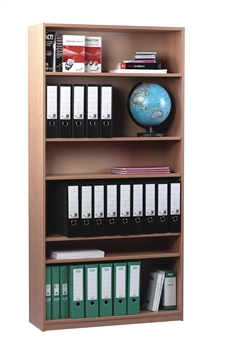 Ready assembled wooden open bookcases, 900mm wide, in 5 different heights. Suitable for the school classroom, office, or storage room. The bookcases have differing numbers of adjustable shelves according to their height. Ideal for book/folder storage in the school classroom or school offices. The bookcase comes in a beech or maple finish. Supplied fully assembled.