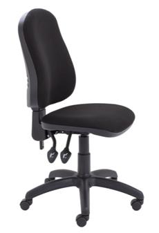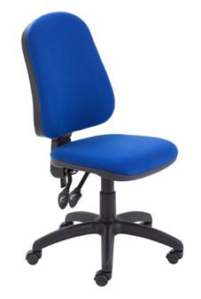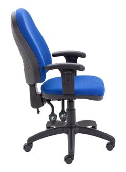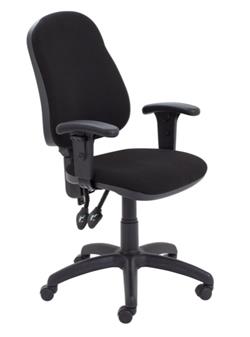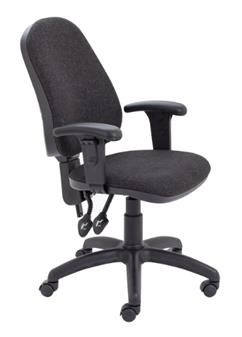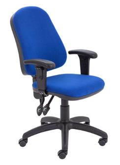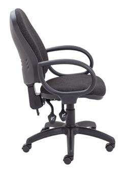on castors, with twin lever - (gas-lift and back-tilt). Ideal seating for the school classroom, computer room, or other education environments. Available in black, charcoal or blue fabric upholstery. The chair comes with no arms, with fixed loop arms, or with height-adjustable arms. 2 year manufacturer's guarantee.