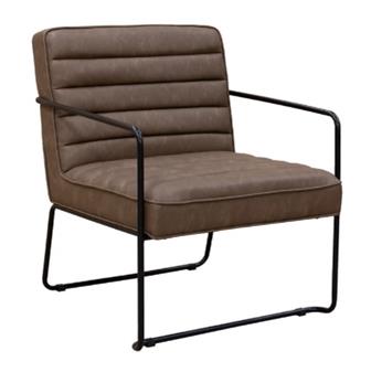 Paulo Lounge Chair with ribbed brown faux leather padded seat and back, and with black metal frame and arms. Ideal chair for receptions and waiting areas in the school, or office.