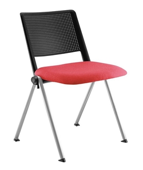 The Pinnacle Black - Vinyl Upholstered Stacking Chair, features a sturdy black plastic seat with perforated plastic back, mounted on a robust metal frame, which comes in black or chrome. The chair can come with an upholstered seat only or upholstered seat and back, available in a range of contract vinyl colour options. The vinyl is wipeable and washable for easy maintenance, and is suitable for healthcare settings. The Pinnacle chair is ideal for school classrooms, meeting rooms, conference halls, or waiting areas, and is stackable up to 8 high. Optional arms are available which feature arm rests which will flip up to allow the chairs to stack. An optional trolley will carry up to 20 stacked chairs. There is a minimum order quantity of 4 chairs, and the manufacturer offers a 5 year guarantee on the chair.