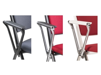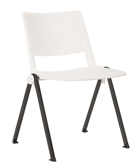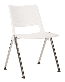 The Pinnacle White Stacking Chair, features a sturdy white plastic seat with perforated plastic back, mounted on a robust metal frame, which comes in black or chrome. The chair is ideal for school classrooms, meeting rooms, conference halls, or waiting areas, and is stackable up to 8 high. Optional arms are available which feature arm rests which will flip up to allow the chairs to stack. An optional trolley will carry up to recommended 10 stacked chairs. There is a minimum order quantity of 4 chairs, and the manufacturer offers a 5 year guarantee on the chair.