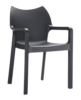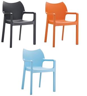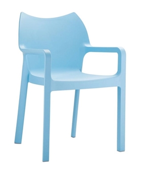 Plaza Armchair, hardwearing and wipe-clean, suitable for dining and canteen areas, breakout areas etc.. and available in a choice of 3 colours - black, orange, and light blue . This superior quality blow moulded plastic side chair is recommended to stack up to 8 high. Suitable for indoor or outdoor use, and with a 1 year manufacturer's guarantee.