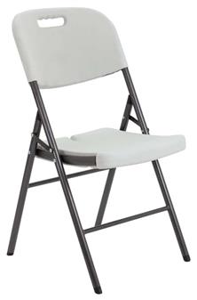 Next day delivery polypropylene folding conference chairs with dark grey metal frame and off white folding chair, suitable for canteen areas, conference rooms, the meeting room, training areas, outdoor events etc.. Durable, wipe-clean plastic surface, and foldable for easy storage. Ideal seating for the school classroom, lecture room, office, training room, public sector organisation etc.. A multi-purpose chair available at short notice with next day delivery.