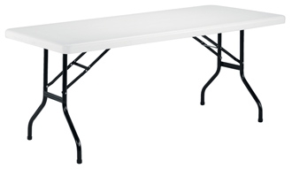 Next day delivery polypropylene folding table, suitable for educational settings, or for banqueting, canteen, or conference/meeting rooms, etc.. and with a durable wipe-clean plastic surface and easy folding dark grey metal legs. Ideal for the school classroom, canteen, lecture room, office, training room, public sector oganisation etc.. Lightweight table and designed to fold easily for convenient storage. A multi-purpose table available at short notice with next day delivery.
