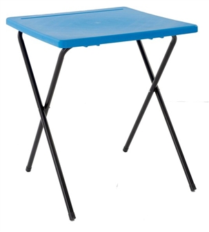 Polypropylene Folding Exam Desk for school, college, university, and other educational centres. This plastic exam desk top is manufactured from a one piece mould, and is made from recyclable injection moulded polypropylene. The table top comes with a pen groove and the tops come in blue or charcoal. The table comes with a 'snapping' lock mechanism ensuring the exam desks will never collapse when up. The desk comes with an extra strong oval steel frame, and it will fold neatly away when not in use. An optional exam desk trolley will hold up to 40 exam desks.