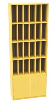 Post Room Pigeon Hole Shelving Unit - 24 Spaces - includes 24 vertical pigeon hole spaces and a lower cupboard. These robust units make ideal furniture for post rooms and mail rooms, for staff rooms, reception areas, or for office storage. The post room shelving unit with cupboard comes fully assembled, and is available in a durable, wipe-clean, laminate finish in a choice of 5 colours. UK manufactured and comes with a 5 year manufacturer guarantee.