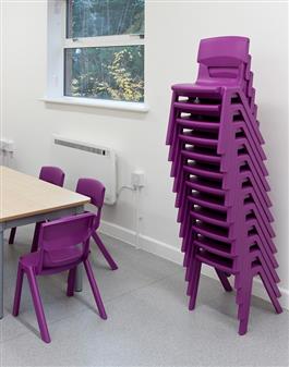 Postura Plus One Piece Chair - Adult Sizes. These chairs are designed to promote good posture and provide exceptional comfort. Made in the UK and built from high imact resistant polypropylene for superior strength, and with gas injected legs to increase strength and reduce weight. The chair comes in 2 adult heights (Size 5 & 6) and is stackable up to 12 high against a wall, and is available in 20 vibrant colours. The chair is fully compliant with EN1729 Parts 1 & 2, and is BS 5852 (Crib 5) Certified, and has a 20 year manufacturer's guarantee. Optional links are available to connect chairs. (For junior and adult heights please see Related Products.) Mininum 4 Chairs