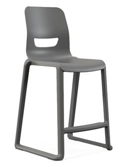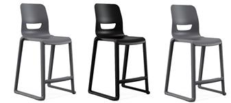 Postura Plus One-Piece High Back Stools are anti-static, stain resistant and easy to clean, this backless stool is built for practical envionments where working at height is required. It's slim, sled base design is stackable up to 5 high and with large footrest for long seated periods and includes non-marking built in glides for non-slip floors. Made in the UK and built from high impact resistant polypropylene for superior strength, and with one piece injected mould with no loose parts or gaps. Three seat heights 560mm, 610mm and 685mm and are stackable up to 5 high and available in 3 stocked colours - iron grey, slate grey & jet black, other colours available see related items but on longer lead time of 2-6 weeks. The chair is fully compliant with EN1729 Parts 1 & 2 and has a 20 year manufacturer's guarantee.