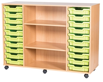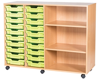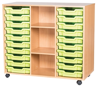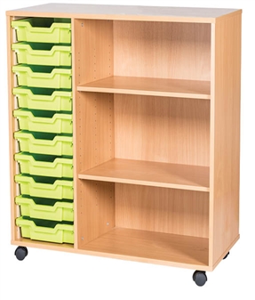 , with Gratnells shallow plastic trays with a shelf. They are available in a wide range of sizes and they can be arranged to fit together to make a storage wall. These static & mobile storage units are ideal furniture suited to the school, classroom, and other educational environments, and may also be used at home, in the office or workshop. The units come with Gratnell tray colour options and available in an array of bright colours to choose from. The mobile units come fully assembled and come in a choice of 5 wood finishes. They come with a 5 year guarantee.