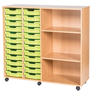 , with Gratnells shallow plastic trays with a shelf. They are available in a wide range of sizes and they can be arranged to fit together to make a storage wall. These static & mobile storage units are ideal furniture suited to the school, classroom, and other educational environments, and may also be used at home, in the office or workshop. The units come with Gratnell tray colour options and available in an array of bright colours to choose from. The mobile units come fully assembled and come in a choice of 5 wood finishes. They come with a 5 year guarantee.