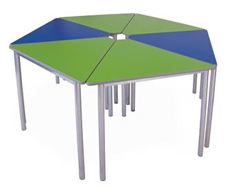 Premium Cylinder Wedge Tables - PU Edge, are fully-welded 32mm diameter frame tables, which come with a hardwearing 18mm PU Edge & laminated top, which is available in a range of laminate colours. Available in 6 heights to suit ages 3 through to adult (see below). These tables will suit any school classroom, or other educational and learning environment, as well as meeting rooms, conferences and may also be used in canteens or eating areas. Each table has a sturdy fully welded steel frame which comes in a choice of 11 different frame colours. Can be used to create different shapes for meetings or classroom. Tables also available with front leg castor for ease of moving and flexibility. (For Related Products or to mix & match, see items below.)