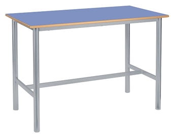 Premium H-frame work table/bench designed for use throughout the school classroom where extra strength, stability, and height are needed. Suitable for the art room, science lab, craft/technology studio, home economics suite, design studio, research laboratory etc.. The Premium frame is made with chunky 50mm round steel tube, and the frame itself can come in one of 4 colour choices. The table comes in a choice of 6 laminate top finishes, and with a rounded bullnose MDF edging, and is available in 6 different heights. THIS MANUFACTURER WILL NOT DELIVER TO DOMESTIC ADDRESSES & APPLIES A SURCHARGE FOR QUANTITIES UNDER 3. (As a guide, your stool seat height should be 20-30cm lower than the table top height.)