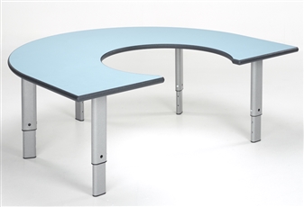 Premium finish with a 25mm top and spray PU edge. Perfect for Nursery & Junior schools environments as they come in a variety of 13 vibrant laminate tops with 7 laminate tops having matching legs creating a fun and bright addition to the classroom. One table fits all sizes and the table heights, 5 in total, are adjusted by an oval shaped allen key. Size 1 - 400mm (2-3 years) Size 2 460mm (3-4 years) Size 3 - 530mm (4-6 years) Size 4 = 590mm ( 6-8 years) Size 5 640mm (8-11 years). Each table is able to seat 4-6 children - depending on size/age of children.