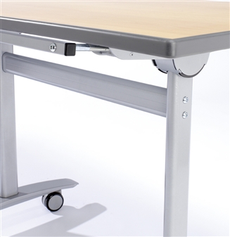 Premium Tilt Top Tables - rectangular & circular, for a variety of applications in education, public sector, training, canteens, and other commercial and lerning centres. The tables are designed to withstand the demands of modern school and office environments. These tables are easy to open and close and has a smooth 'no-slam' action, offering superb strength and stability. It comes with a hardwearing 18mm MDF laminated top which is available in a range of laminate colours, and with a high impact resilient PU edge. Available in 710mmh height and a silver frame with 4 x locking castors. The rectangular flip top table comes in 4 sizes and the circular in 2 sizes and with a 5 year guarantee.