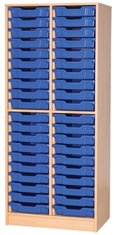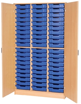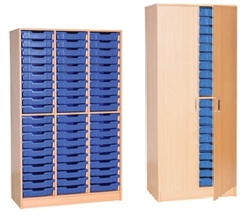 6ft High Tray Cupboards, available as 1, 2, 3 width units, & holding 20, 40, & 60 Gratnells plastic trays respectively. These storage units are ideal furniture suited to the school, classroom, and other educational environments, and may also be used at home, in the office or workshop. The units come with different tray colour options or as a colour combinations . The units come fully assembled and come in a durable, wipe-clean, laminate finish in beech, maple, oak grey & white. They come with a 5 year guarantee. They are available without doors and with doors and optional locks.
