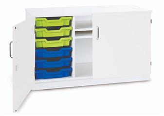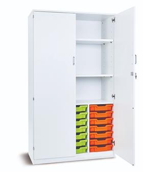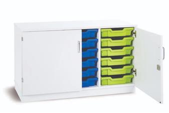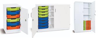 Fully assembled premium tray storage cupboards available in white and grey MFC with Monarch Trays & runners. These cupboards come with 6, 8, 16, 18, 21 & 24 shallow trays with lockable doors & handles. Perfect in educational environments including classrooms and offices. The unit is available in the full range of plastic tray colours. These are part of a range of storage solutions to mix & match in the classroom or office (see Related Products).