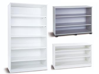 Fully assembled premium bookcases available in white and grey MFC. These bookcases come in three sizes. They are part of a range of storage which provides tray & cupboards - perfect to mix & match (see Related Products). Perfect in educational environments including classrooms and offices.