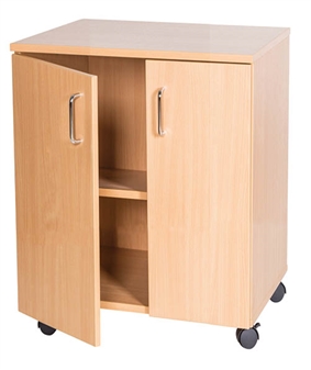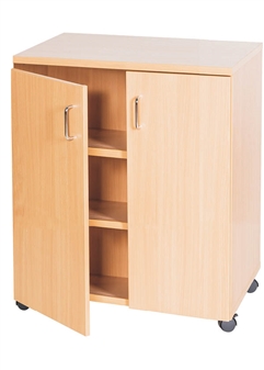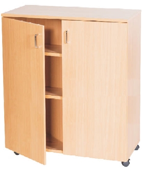 Fully assembled Premium wooden double-door stationery/storage cupboards, available in a range of different heights. Suitable for the school classroom, staff room, office, or storage room. The cupboards are available in a have differing numbers of adjustable shelves according to their height. Ideal for book/folder/stationery/toy etc.. storage in the school classroom or school office. The cupboards come in a durable, wipe-clean, Solid MDF Wood in a choice of 5 wood finishes and chrome handles. Optional locks & Castors available.