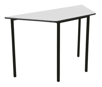 Primary 1100w x 550d Trapezoid Table - PVC Edge, with robust 25mm fully welded square section frame, and with laminated top in a range of colours and a PVC edge which can be chosen to match the laminate top, or create a contrasting colour to the chosen top colour. This primary school table can be pushed together with other trapezoid tables, or with 1100 x 550 rectangular tables in the same range (see Related Items), or can stand alone. Available in 6 heights, these tables are used throughout school classrooms in the UK. The steel frame is available in a choice of several different Epoxy powder coated frame colours. UK manufactured and come with a 5 year guarantee. (For associated tables in the same range with matching frame and edge type, see Related Products).