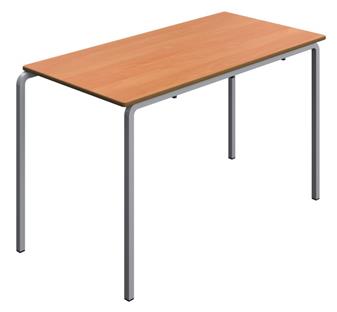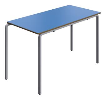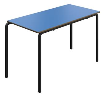 Quick Delivery Crush Bent MDF Classroom Tables - 1200 x 600, available on a 7-10 working day delivery. These rectangular tabes with crush bent frame come in 2 secondary/adult heights - 710mm and 760mm, and are available from stock with laminated tops in a choice of 4 colours: beech, grey, blue and white.