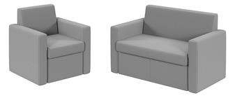 Quick Delivery Melody Seating, upholstered in a smoke grey fabric and consists of a single seat armchair and a two seater sofa. The design provides wide armrest and combines a comfortable sit with a strong robust construction. Ideal for school reception areas, staffrooms, waiting rooms, or as visitor chairs. 2 year manufacturer guarantee.