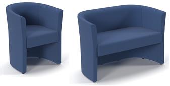 Quick Ship Luxe Seating Range, upholstered in a cobalt blue fabric and consists of a single seat tub and a two seater tub. The design provides a comfortable and supporting seat yet conveniently sized and ideal for any reception or waiting area, or any confined space. 2 year manufacturer guarantee.