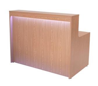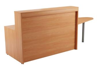 Reception Desk With High Counter Top - for school or office reception areas, with high counter top and with optional extension table. The reception desk comes in two sizes: 1460mm or 1660mm wide, and is available in 4 colours: beech, oak, grey oak or white, and there is an optional light that can be added to the top customer side of the desk. The desk comes flat-packed for easy self-assembly.