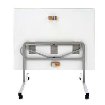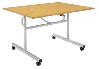 Rectangular Tilt Top Dining Table, perfect for regular or occasional use in the classroom or school dining area. The table is easy to open and close and then when tilted up can be wheeled away for convenient storage. It comes with a hardwearing 18mm MDF laminated top in a range of laminate colours, and rounded bullnose MDF edge. Available in 6 heights to suit a variety of ages. The table comes supplied with a choice of 4 frame colours, 2 sizes and with a 5 year guarantee.