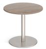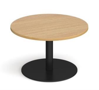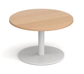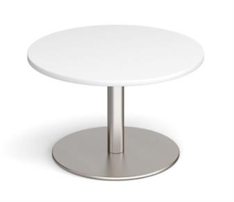 Round Circular Base Coffee Tables with heavy steel base made from a single column with flat round base. The base is available in brushed steel, white, or black, and the 800mm diameter top which comes in a variety of top colours. The table sits easily with our range of fabric & vinyl seating, and is ideal in staff rooms, reception areas, waiting rooms etc..