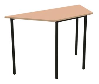 Secondary 1200w x 600d Trapezoid Table - MDF Edge, with robust 25mm fully welded square section frame, and with laminated top in a range of colours and bullnose MDF edge. This secondary/adult table can be pushed together with other trapezoid tables, or with 1200 x 600 rectangular tables in the same range (see Related Items), or can stand alone. Available in 6 heights, these tables are used throughout school classrooms in the UK. The steel frame is available in a choice of several different Epoxy powder coated frame colours. UK manufactured and come with a 5 year guarantee. (For associated tables in the same range with matching frame and edge type, see Related Products).