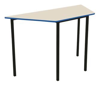 Secondary 1200w x 600d Trapezoid Table - PU Edge, with robust 25mm fully welded square section frame, and with laminated top in a range of colours and a PU edge which comes in a choice of 3 colours. This secondary school table can be pushed together with other trapezoid tables, or with 1200 x 600 rectangular tables in the same range (see Related Items), or can stand alone. Available in 6 heights, these tables are used throughout school classrooms in the UK. The steel frame is available in a choice of several different Epoxy powder coated frame colours. UK manufactured and come with a 5 year guarantee. (For associated tables in the same range with matching frame and edge type, see Related Products).