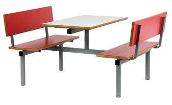 Sefton Fast Food Unit with laminated bench seats and backs available in a wide range of laminate colours. Easy to wipe clean and maintain. These units are available as 2, 4 and 6-seater units. The underframes are made from fully welded 50mm square tubular frame coated in a choice of hard wearing EPC paint finishes. The units are extremely robust and built for commercial use use such as takeaway restaurants, construction site canteen areas, student unions, schools, and other high use dining applications. Each unit comes with a fixed table which comes in a choice of laminate finishes and edge colours. An optional floor fixing kit is available, which includes two floor fixings with bolt hole in each to slide into two of the legs on opposite corners. (Bolts not provided as different floor surfaces will require different fixings). UK manufactured.