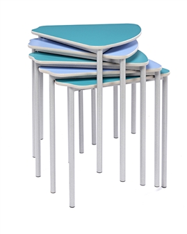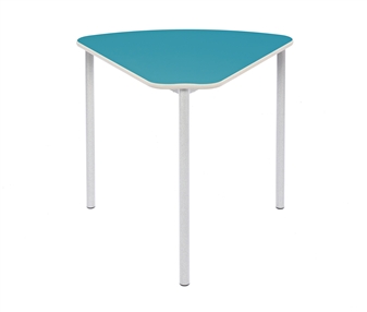 Segga Tables are modular triangular tables which can be used as a single-person table, as a line of desks, or can be positioned in a variety of groups to create numerous shapes and configurations. This versatile classroom table is ideal for any school classroom, or other educational and learning environments. The tables come with a modern 32mm frame and 18mm top, and rounded corners. The table is available with a front leg castor to give increased flexibility and mobility. The table is finished with Duraform PU Edge - a high impact and resilient textured spray PU edge, enhancing the look and lifetime of your tables. The table comes in one size, but in 6 different heights. There are 14 top colour options and 4 standard frame colour options as well as an option at additonal cost for silver frame - please enquire by calling us for the additonal cost. The table comes with a 5 year guarantee.