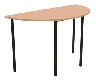 Semicircular School Tables - MD Edge, in two sizes: 1100w x 550d (standard primary size) and 1200w x 600d (standard secondary size). The table comes with robust 25mm fully welded square section frame, and with laminated top in a range of colours and a bullnose MDF edge. The tables can be pushed together with other semicircular tables, or with rectangular tables in the same range (see Related Items), or can stand alone. Available in 6 heights, these tables are used throughout school classrooms in the UK. The steel frame is available in a choice of several different Epoxy powder coated frame colours. UK manufactured and come with a 5 year guarantee. (For associated tables in the same range with matching frame and edge type, see Related Products).