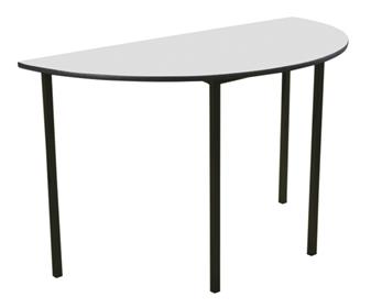 Semicircular School Tables - PVC Edge, in two sizes: 1100w x 550d (standard primary size) and 1200w x 600d (standard secondary size). The table comes with robust 25mm fully welded square section frame, and with laminated top in a range of colours and a PVC edge which can be chosen to match the laminate top, or create a contrasting colour to the chosen top colour. The tables can be pushed together with other semicircular tables, or with rectangular tables in the same range (see Related Items), or can stand alone. Available in 6 heights, these tables are used throughout school classrooms in the UK. The steel frame is available in a choice of several different Epoxy powder coated frame colours. UK manufactured and come with a 5 year guarantee. (For associated tables in the same range with matching frame and edge type, see Related Products).