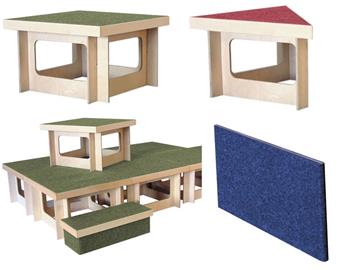 - Square Units, Triangular Units, Plinth Panels, Low & Tall Steps, Trolley