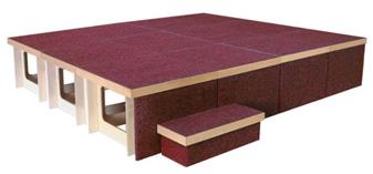 The carpeted top helps prevent slipping and is available in 6 colour options - dark red, dark blue, dark green, charcoal, light grey, and brown. Bespoke stage sets sizes are also available - please contact our sales team for a quote. Manufactured in the UK, and with a 5 year manufacturer's guarantee.