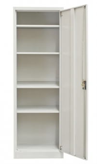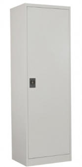 Slimline Single Door Stationery Cupboard, 6ft high and in grey finish, ideal for the school office or classroom. The storage cupboard is lockable, and comes with 4 adjustable shelves. The cupboard comes fully assembled. An essential item of furniture in the office and for various kinds of storage in a number of educational settings, offices, workshops, labs etc..