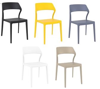 Snowden Side Chair, with a distinctive angular design, suitable for dining and canteen areas, breakout areas, waiting rooms etc.. and available in a choice of 5 colours - black, yellow, dark grey, taupe and white. This superior quality blow moulded plastic side chair is extremely durable and strong, and is tested by FIRA to BS EN 16139:2013 Test Level 2. The Snowden chairs are recommended to stack up to 8 high. Suitable for indoor or outdoor use, and with a 1 year manufacturer's guarantee.