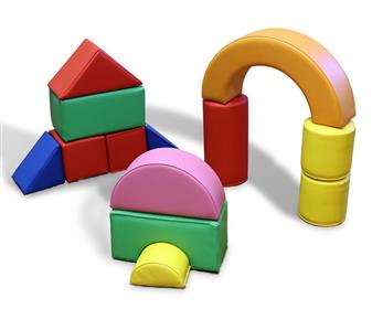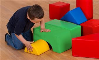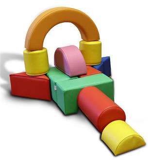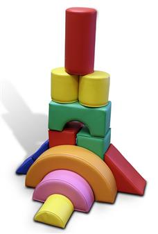 Soft Play Build Set - a versatile, portable and compact set of 13 pieces with an assortment of soft play shapes to promote active play, and allowing children to create a wide variety of role play and circuit course constructions. The brightly coloured shapes help promote physical and PSE development and can work for both individuals and collaborative play. The soft play set is designed to encourage learning through play as well as helping to build confidence and a love for learning. A starter guide is included giving details and ideas on different constructions. The blocks are finished in a soft touch high quality vinyl making the set both durable and easy to clean. The holdall makes the set portable and easy to store away.