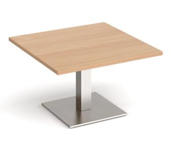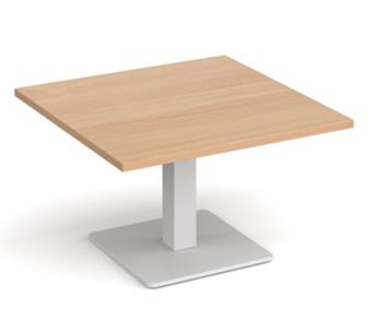 Square Coffee Tables with heavy steel base made from a single column with flat square base. The base is available in brushed steel, white, or black, and the 800 x 800mm top can come in Beech, Oak, Grey Oak, Kendal Oak, Barcelona Walnut or White. The table sits easily with our range of fabric & vinyl seating, and is ideal in staff rooms, reception areas, waiting rooms etc..