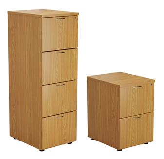 Start Wooden 2, 3, or 4-drawer filing cabinets, ideal for the school classroom, office, or storage room. Robust and heavy-duty, the cabinets come fully assembled. The filing cabinet drawers come with ball bearing slides, with 100% drawer-extension, with a central anti-tilt locking system, and with two keys. Drawers will accomodate either foolscap or A4 files. A necessary filing & storage solution to any school office, workshop, lab, classroom, etc.. Cabinets come in beech, oak, grey oak or white. 5 year manufacturer's guarantee.