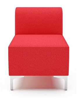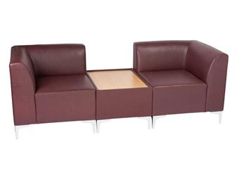 Stirling Modular Reception Seating - low back reception seating with single seat, armchair, universal corner section (you simply rotate it), and wooden or glass topped table. The modular design enables a variety of configurations to be created - 2-Seater, 3-Seater and so on. Ideal for reception rooms, 6th form common rooms, staffrooms, and other waiting areas. The units come in a large choice of fabric colours - (please request fabric sample cards prior to ordering). The Stirling Seating units come with a 5 year guarantee. (For Stirling Modular Seating In Vinyl Upholstery, see Related Products).