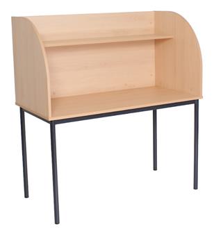 constructed from 18mm thick MFC, including an upper shelf and finished with a rounded MDF edge. The wooden carrel body is available in a choice of laminate finishes, and the 32mm round tube metal frame comes in a choice of colour finishes. These study booths create an isolated study space for users, increasing privacy and concentration. They are available in 4 width sizes - 800mm up to 1400mm. The study carrels are ideal for schools, libraries, and study rooms, and come in a choice of desk heights to suit all age groups. The units will require simple assembly. Manufacturer guarantee 3 years.
