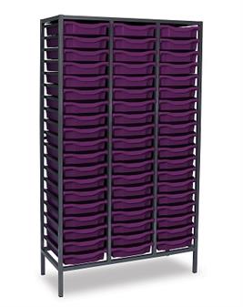 Tall Charcoal Metal Frame Plastic Storage 3 Columns - Purple Trays