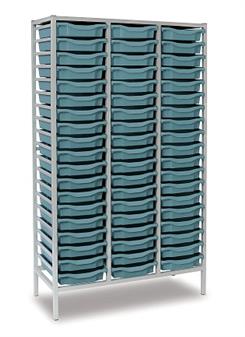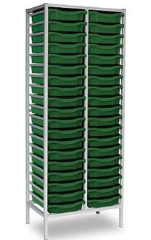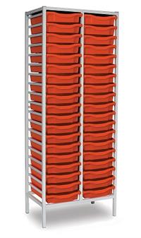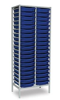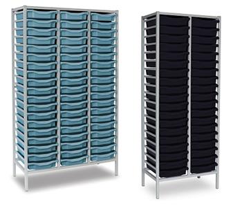 Tall Grey Metal Frame Plastic Storage and available in 2 widths - double column with 38 trays and triple column with 57 trays. The units are static with a 25 x 25mm ERW steel frame, fully welded with an epoxy powder coated finish and frames are fitted with heavy duty feet. These units are supplied with Monarch Trays in a variety of colours. The recessed tops are removable with open corners for easy cleaning. These units are suited to school, classroom, and other educational environments, and may also be used at home, in the office, or in workshop settings. Manufacturer 5 year guarantee.
